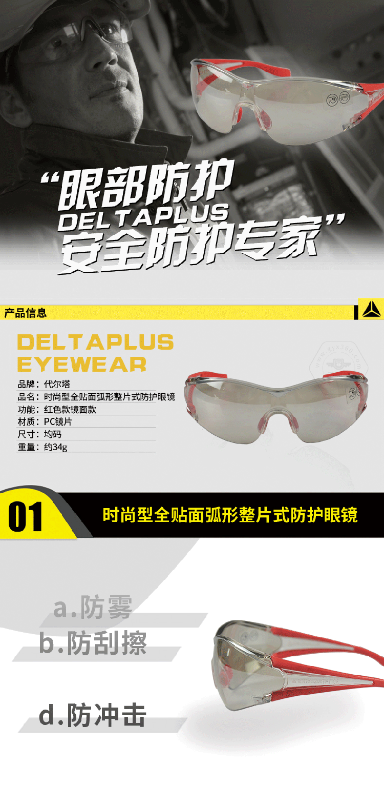 商品名稱:代爾塔 101126 時(shí)尚型全貼面弧形 安.全騎車(chē)眼鏡 PC鏡片 女 防沖擊刮擦 紅色